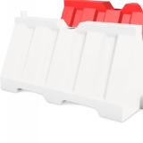 La barrera New Jersey de alta resistencia fabricada en polietileno, es rellenable para poder tener mayor estabilidad y resistencia para reducir la probabilidad de volcamiento. Es apilable, lo que facilita su transporte y posee uniones resistentes que permiten instalarlas por largos espacios.